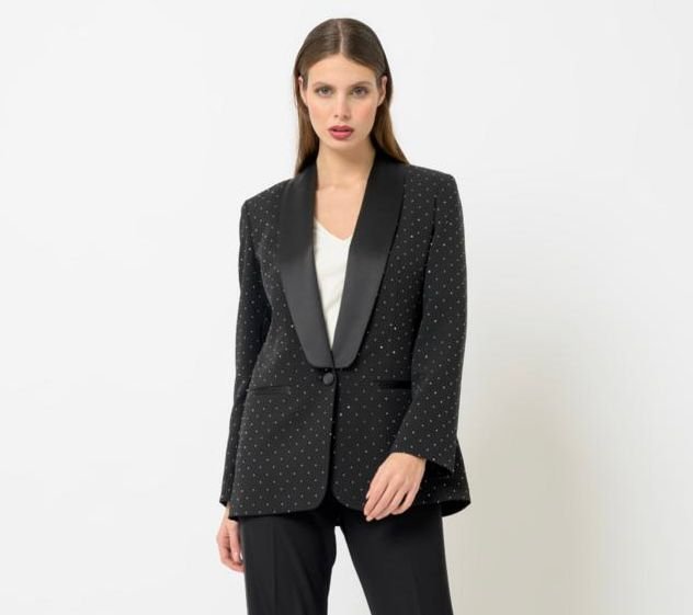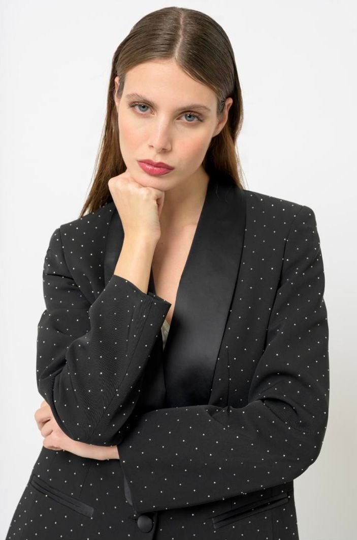 Giacca mono petto collo raso con mini borchie.