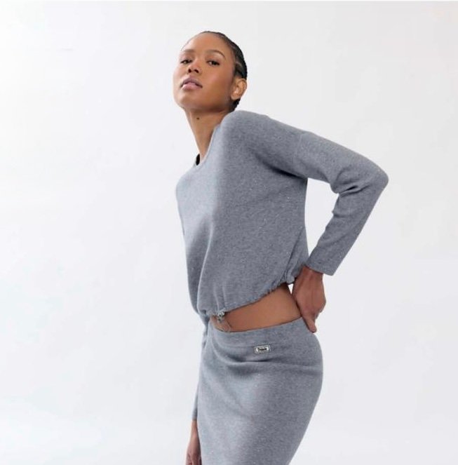 Maglia corta glitter con laccio.